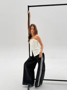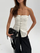 White fitted denim corset, designed to be paired with our matching white denim pants for a coordinated set.