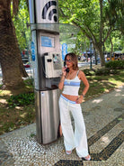 Fitted top and loose-fitted pants with two back pockets. Sold as a set but can be styled individually too. Female Model is wearing size XS/S