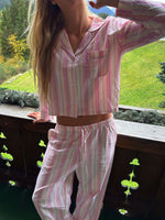 Our Pjs are designed for a comfy, relaxed fit. They are true to size. Model is wearing size S