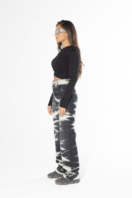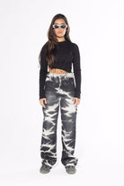 Our Jeans are made for female sizing and are designed for a high waist fit. We recommend sizing up. Due to the nature of the printing process, each piece has an individual & unique print placement resulting in slight variation from the image photographed. Female model is wearing size 36