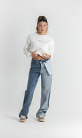 All our jeans are made of high quality denim material that's not stretchy. Made in Egypt.
